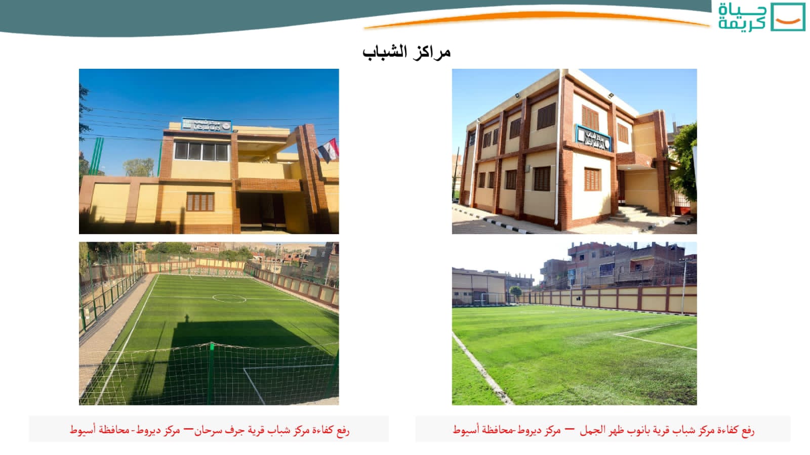 وأوضح رئيس الجهاز المركزى للتعمير، أنه تم الانتهاء من تنفيذ 32 مجمع خدمات للمواطنين، من إجمالى 35 مجمعاً، تُنفذ على مستوى الوحدات المحلية، وتقدم 7 خدمات للمواطنين، وهى (سجل مدنى – شهر عقارى – بريد – مكتب تموين – مكتب تضامن اجتماعى – وحدة محلية – مجلس محلى)، ومركز تكنولوجى يتم تقديم الخدمات للجمهور من خلاله، بما يحقق توفير الوقت والمجهود، كما تم الانتهاء من تنفيذ 31 مجمعاً للخدمات الزراعية، من إجمالى 35 مجمعاً، تُنفذ على مستوى الوحدات المحلية لتقديم الخدمة لباقى القرى والتوابع، وتضم (وحدة بيطرية – جمعية زراعية – مركز تجميع ألبان – مركز إرشاد) بما يسهم في تنمية هذه القرى، بجانب الانتهاء من الأعمال بـ78 مركز شباب (إنشاء – إحلال وتجديد – تطوير ورفع كفاءة)، من إجمالى 82 مركزاً، وتضم هذه المراكز، ملاعب ومسطحات خضراء، وكافتيريات، ومنطقة ألعاب أطفال، ومبنى أنشطة رياضية، يشتمل على (حضانة – مكتبة – جيم – صالة ألعاب – صالات أنشطة).