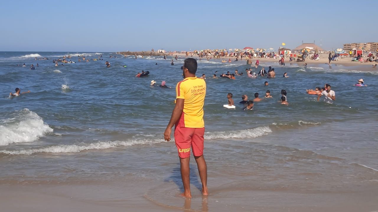 وتابع هيثم عطية، رئيس مدينة مصيف بلطيم، استمرار توافد المواطنين على شواطئ المدينة للاستمتاع بشواطئها، كما تابع توزيع أفراد الإنقاذ والمعدات والمهمات الخاصة بأفراد الانقاذ.