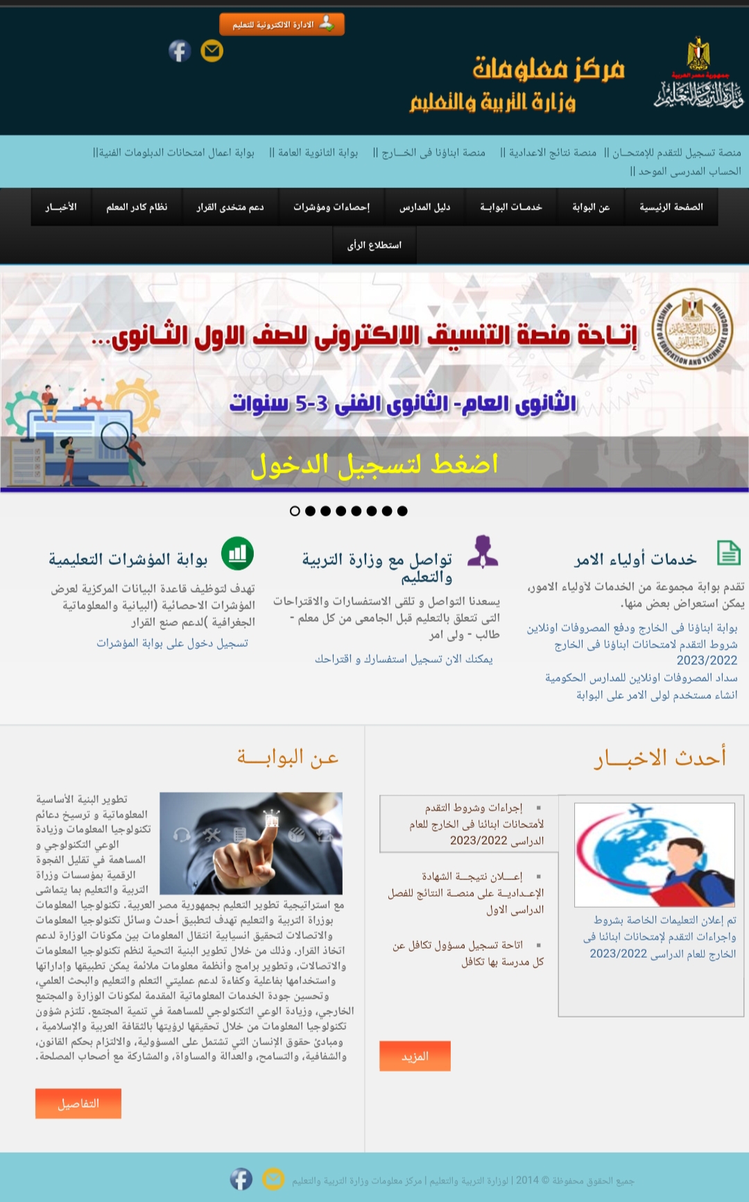 وأكدت وزارة التربية والتعليم والتعليم الفني، أنه في إطار توجهات الدولة نحو التحول الرقمي وتحسين وتطوير الخدمات التعليمية المقدمة للطلاب وأولياء الأمور، واستكمالاً لما تم خلال الأعوام الدراسية الماضية بشأن ميكنة أعمال تنسيق الطلاب الناجحين في الشهادة الإعدادية للتقدم لمدارس المرحلة الثانوية “عام وفني – بنظام الثلاث والخمس سنوات” ، واستعداداً لبدء إجراءات تنسيق الطلاب التقدمين للصف الأول الثانوي إلكترونيا للعام الدراسي الجديد (2024/2023).