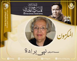 يكرم المهرجان القومي للمسرح المصري برئاسة الفنان محمد رياض خلال دورته السادسة عشرة، رائدة الديكور المسرحي الفنانة التشكيلية نهى برادة، والتي نالت إجماع كبير علي اختيارها من قبل اللجنة العليا للمهرجان .