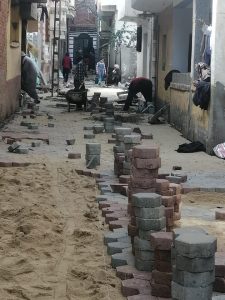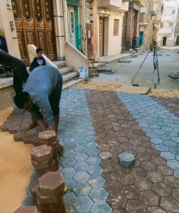 استمرار أعمال التطوير بتركيب بلاط الإنترلوك بالشوارع الضيقة بمراكز ومدن كفرالشيخ