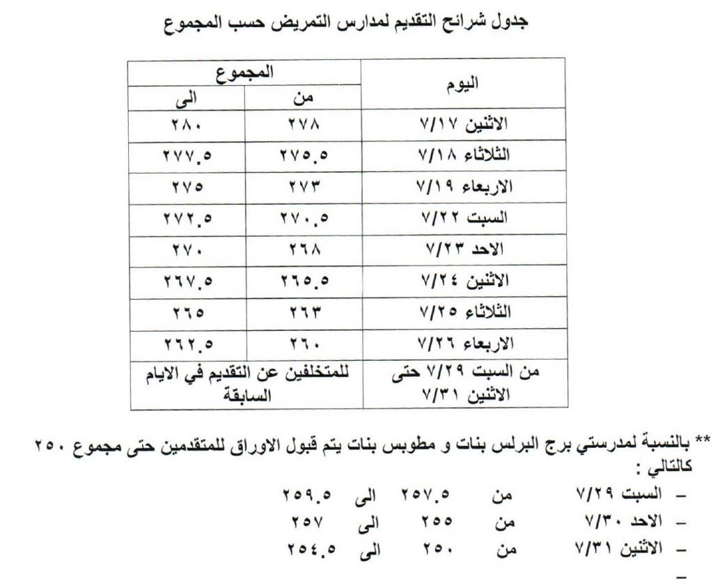 وجرى تحديد درجات قبول الطلاب 250 درجة، بإشراف الدكتورة إلهام محمد، وكيل وزارة الصحة بكفر الشيخ، وجرى تحديد شروط القبول وعددها 7 شروط.