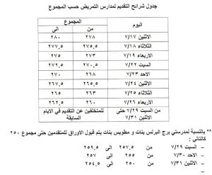 كما تم تحديد مواعيد تقديم الدرجات حسب المجموع بداية من 17 يوليو الجاري حتى 27 يوليو الجاري 2023، وتم تحديد موعد لمن يتم يتقدم بأوراقه، من 29 يوليو حتى 31 يوليو الجاري.