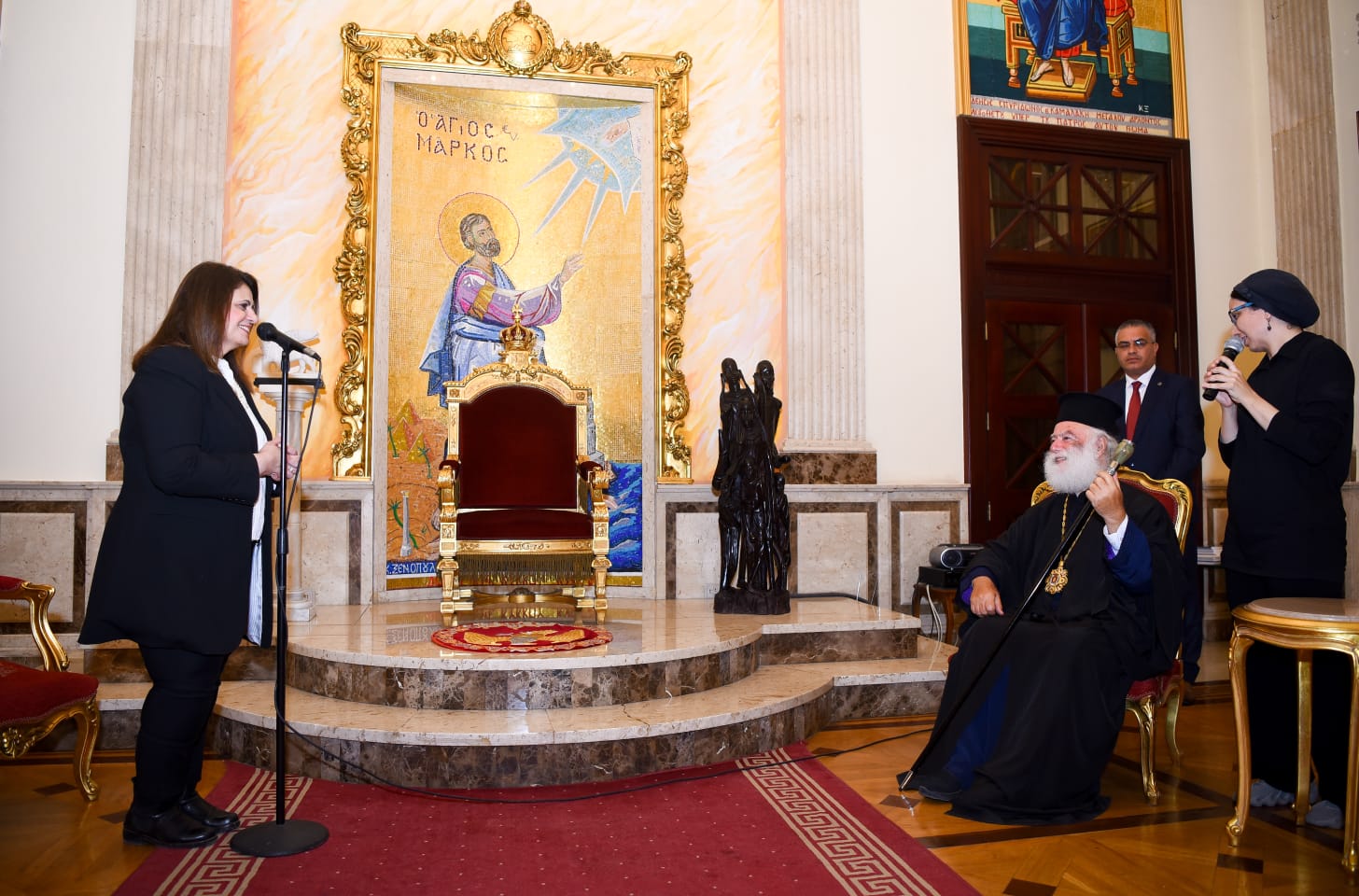 وقام بطريرك الكنيسة اليونانية باصطحاب الوزيرة سها جندي في جولة داخل بطريركية الروم الأرثوذكس الأثرية، وقام بشرح تفاصيل اللوحات والأيقونات والمذبح والمقتنيات النادرة من مخطوطات لا مثيل لها علي مستوى العالم منها أحد أقدم المصاحف، ومخطوطات في عهد الرسول صلى الله عليه وسلم عن قبط مصر في القرون الهجرية الأولى، والتي تؤرخ لمكانة العلاقات المشتركة العريقة، وكذلك زيارة متحف الآثار اليونانية داخل بطريركية الروم الأرثوذكس، وكذلك مكتبة المراجع اليونانية التي تم ترميمها، بالتعاون مع مكتبة الإسكندرية، وكذلك تفقد الزي الخاص بعدد من البطاركة ومراحل تصميمه، وجانب من الهدايا الدينية للبطريركية من جانب عدد من الرموز وقادة الدول.