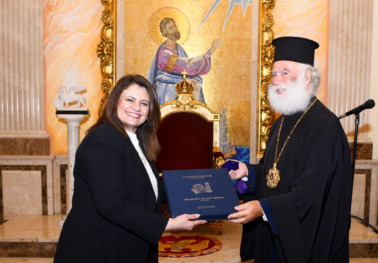 التقت السفيرة سها جندي، وزيرة الدولة للهجرة وشئون المصريين بالخارج، البابا ثيودوروس الثاني بطريرك الإسكندرية وسائر إفريقيا للروم الأرثوذوكس.