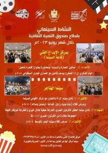 في إطار خطة قطاع صندوق التنمية الثقافية لدعم وتطوير النشاط السينمائي وتعزيز التواصل الثقافي والفني مع الجمهور، يقيم القطاع عدد من الأنشطة في سينما الهناجر وسينما مركز الإبداع الفني بالإضافة إلى نوادي السينما؛ حيث تستضيف سينما الهناجر في الثانية عشر ظهر السبت 22 يوليو «نادي سينما الطفل للكارتون المصري» إشراف المخرجين الكبيرين عطية عادل خيري، وشويكار خليفة.