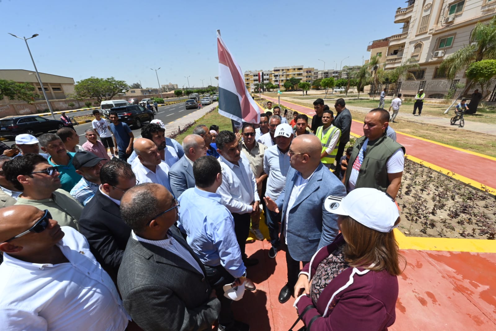 واستهل الدكتور عاصم الجزار، جولته بمدينة السادات، بتفقد أعمال تطوير ورفع كفاءة محور طلعت حرب، بطول 11 كم للاتجاهين، واستمع لشرح من رئيس جهاز مدينة السادات، والذي أوضح أن المحور يتوسط المناطق الصناعية والخدمية، ويعد محوراً هاماً بالمدينة، وتشمل أعمال التطوير توسعة وزيادة عرض الطريق من 9 : 13.5 متر لكل اتجاه، ورفع كفاءة وتطوير أعمدة الإنارة (ليد) بعدد 200 عامود، وتطوير وتجميل الميادين والتقاطعات، وزراعة الجزيرة الوسطي بنباتات الزينة، إضافة إلى تنفيذ ممشى ومسار دراجات بطول 500 متر، لتشجيع الشباب والمواطنين على التقليل من استخدام السيارات الخاصة، لمنع الزحام والحد من التلوث بالمدينة، واستخدام الدراجات كوسيلة بديلة للنقل، وفى إطار خطة الدولة لاستخدام الدراجات وممارسة الرياضة.