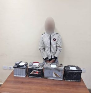 كما تم ضبط (أحد الأشخاص “له معلومات جنائية”) حال تواجده بدائرة قسم شرطة باب الشعرية ، وبحوزته (بطارية سيارة “مجهولة المصدر”) وبمناقشته عن مصدر البطارية المضبوطة بحوزته إعترف بمزاولته نشاط إجرامى تخصص فى سرقة البطاريات