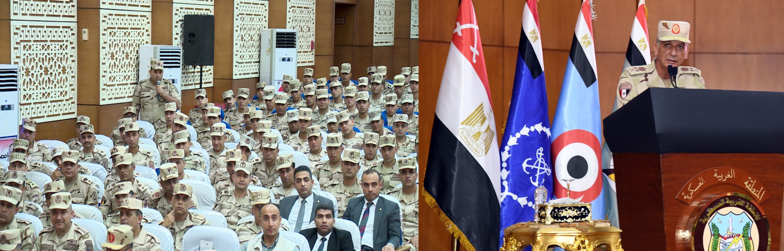 بدأ اللقاء بكلمة اللواء أح / محـمد هيثم محـمد حلمى قائد المنطقة الغربية العسكرية أشار خلالها إلى أن رجال المنطقة الغربية العسكرية يجددون العهد لتقديم الغالى والنفيس من أجل حماية الوطن والحفاظ على إستقراره ، مؤكداً على إستمرار رجال المنطقة فى تنفيذهم مهامهم المكلفين بها فى حماية الحدود الغربية على الوجه الأمثل وفق عقيدة إيمانية راسخة تُعلى مصلحة الوطن فوق أى إعتبار .