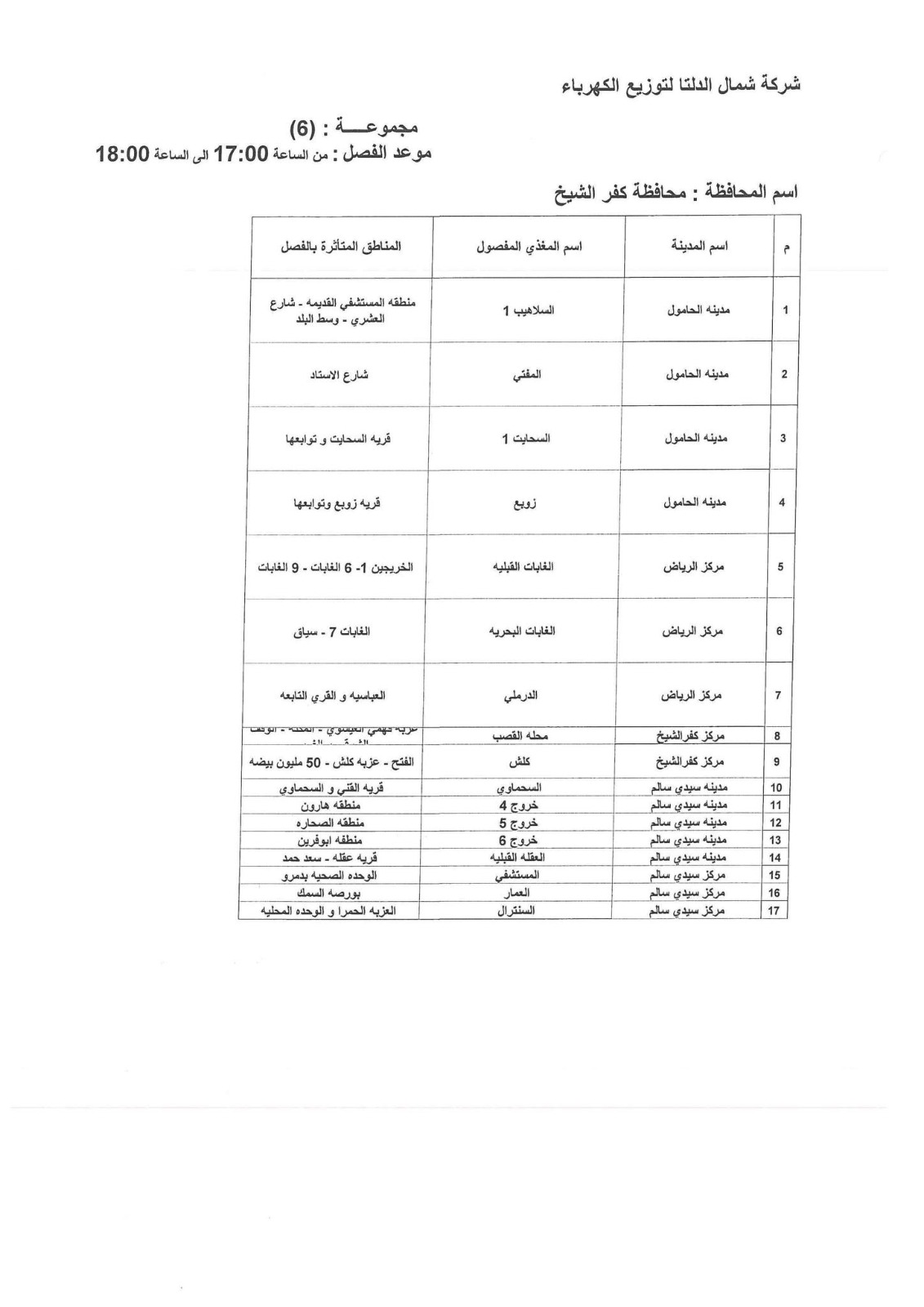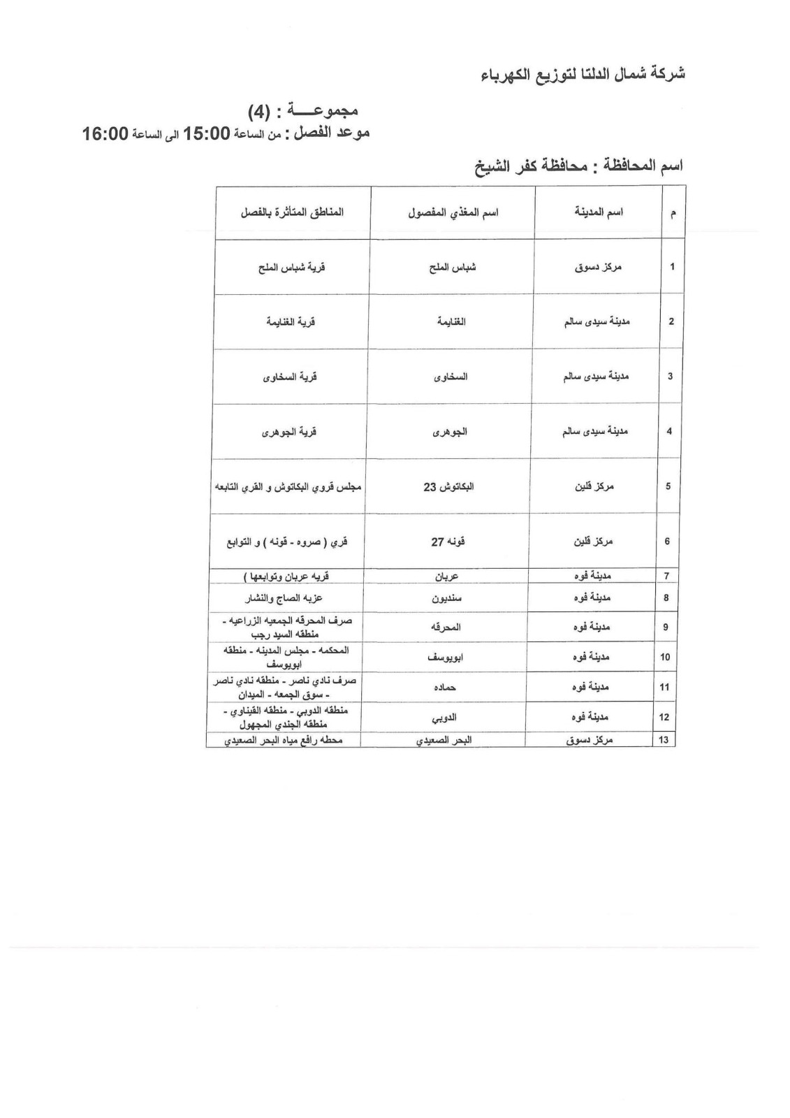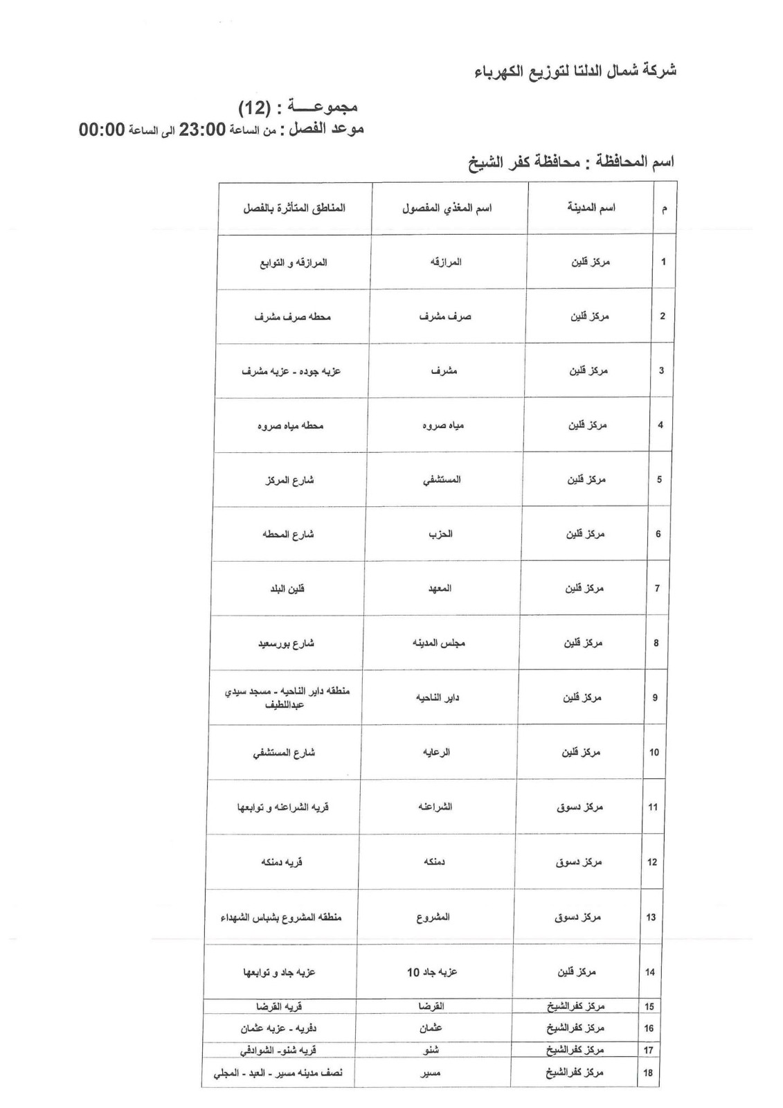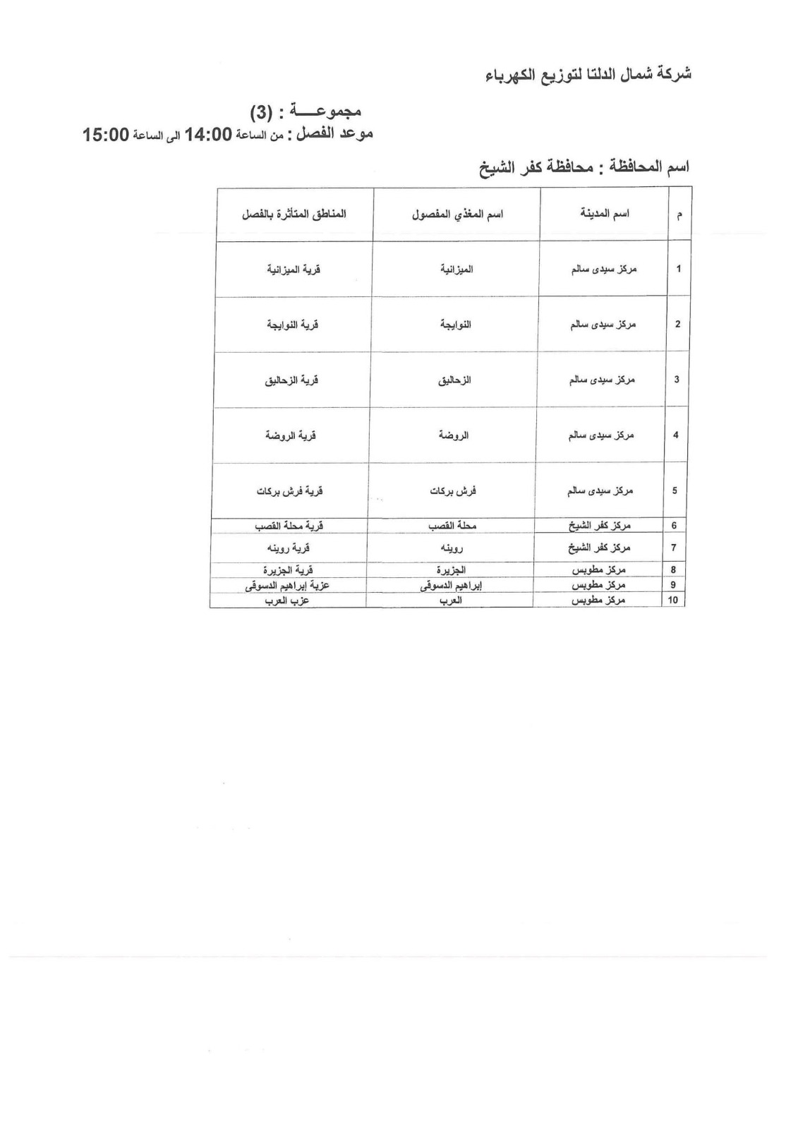ووجه محافظ كفر الشيخ، بالإعلان عن خطة تخفيف أحمال الكهرباء، ليتعرف المواطنون عن موعد قطع التيار الكهربائي في تلك المناطق.