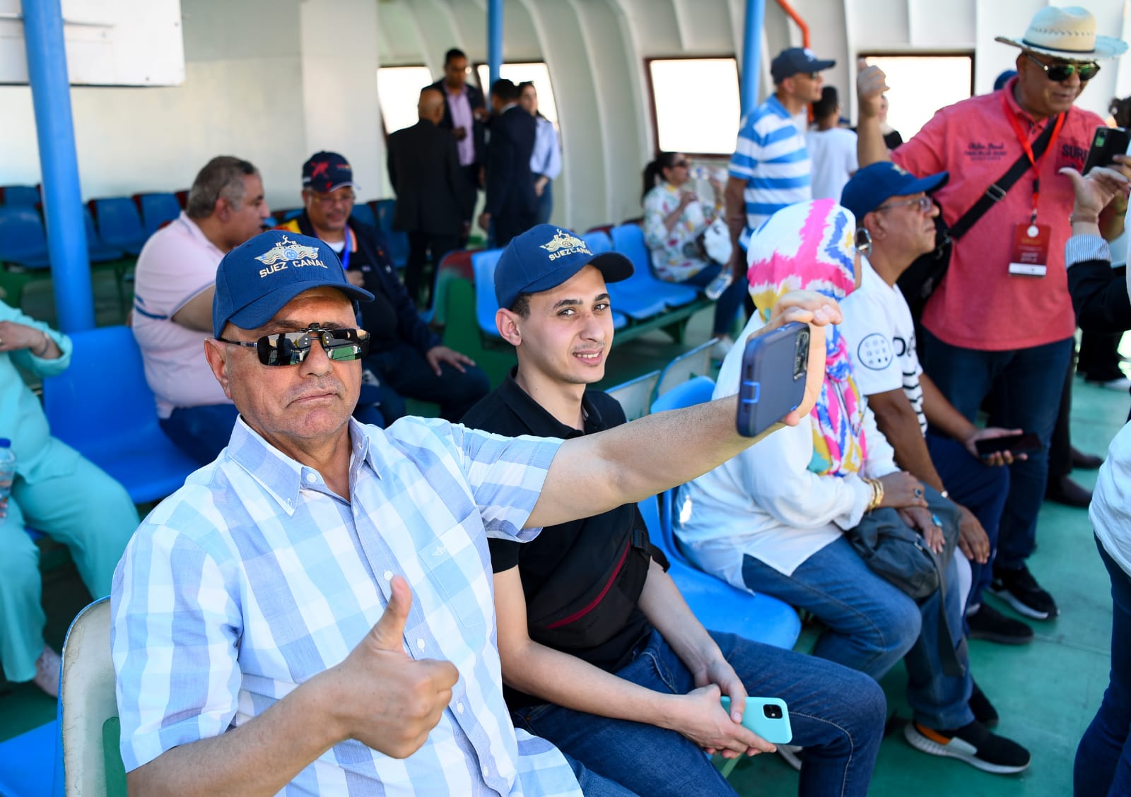 عقب ذلك، توجه الوفد لزيارة أنفاق تحيا مصر، تلاها جولة بحرية في قناة السويس الجديدة بواسطة المعدية “تحيا مصر” لمشاهدة حجم الإنجاز على أرض الواقع.