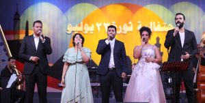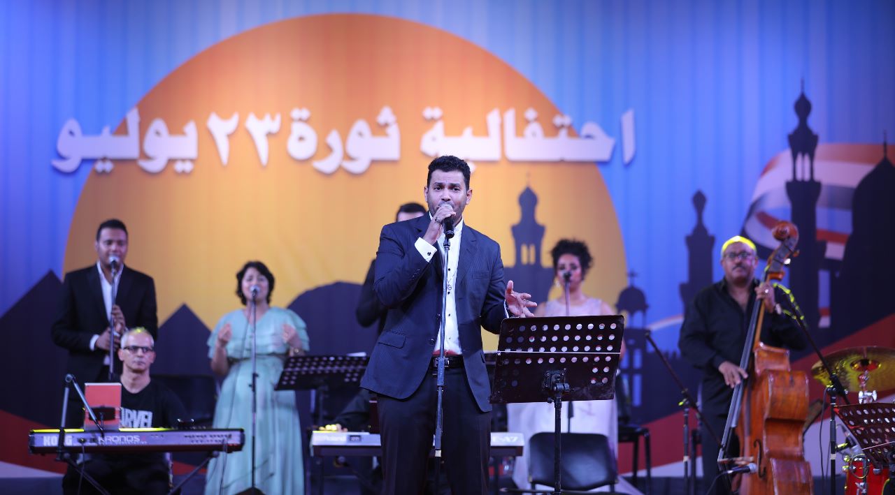 وذلك تحت رعاية الدكتورة نيفين الكيلاني وزيرة الثقافة أحيا الحفل كوكبة من المطربات والمطربين من نجوم مسابقة “أنا المصرى” “أميرة رضا، منار الشاذلي، مؤمن خليل، أحمد شرف، ومحمد سراج”، بمصاحبة الفرقة الموسيقية تحت إشراف الفنان حاتم عزت، وعاش جمهور الحفل مع باقة من أشهر الأغانى الوطنية التي أثرت وجدان المستمع المصري والعربي، منها “بالأحضان، أم الدنيا، صورة، لأنك عظيمة، بلدى التاريخ، ع الدوار، يا مصر، وحشانى بلادى، دى مصر”، واختتم الحفل بأغنية “اسلمى يا مصر ” .