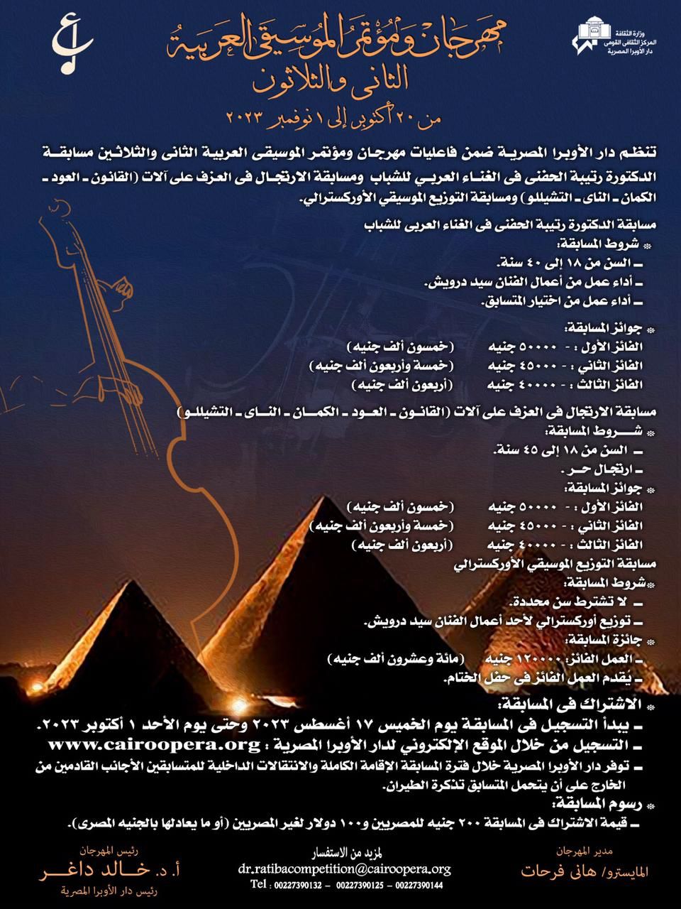 الغناء والعزف المرتجل والتوزيع الاوركسترالى موضوعات مسابقة مهرجان الموسيقى العربية 32