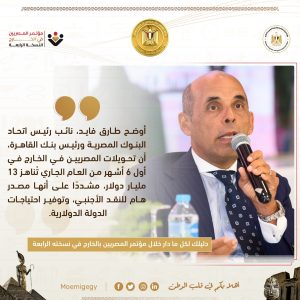 وأشار طارق فايد، نائب رئيس اتحاد البنوك المصرية ورئيس بنك القاهرة، إلى أن تحويلات المصريين في الخارج في أول 6 أشهر من العام الجاري تُناهز 13 مليار دولار، مشددًا على أنها مصدر هام للنقد الأجنبي، وتوفير احتياجات الدولة الدولارية.