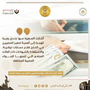 وأشارت السفيرة سها جندي، إلى أهمية تحفيز المصريين في الخارج لفتح حسابات دولارية، والاستفادة بالشهادات ذات العائد المرتفع التي تتيحها البنوك المصرية المختلفة.