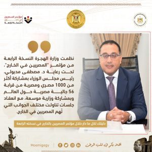 في مستهل المؤتمر، حرص رئيس مجلس الوزراء، على إلقاء الكلمة الافتتاحية للمؤتمر عن بُعد، أشار خلالها إلى أن القيادة السياسية للبلاد والحكومة المصرية تؤكدان دومًا أن أبناء مصر بالخارج هم جزء أصيل من نسيج المجتمع المصري، مشيرًا إلى أن الدولة المصرية بمختلف أجهزتها ومؤسساتها تعمل جاهدةً من أجل توفير كل سبل الدعم والمساندة لأبنائها بالخارج.