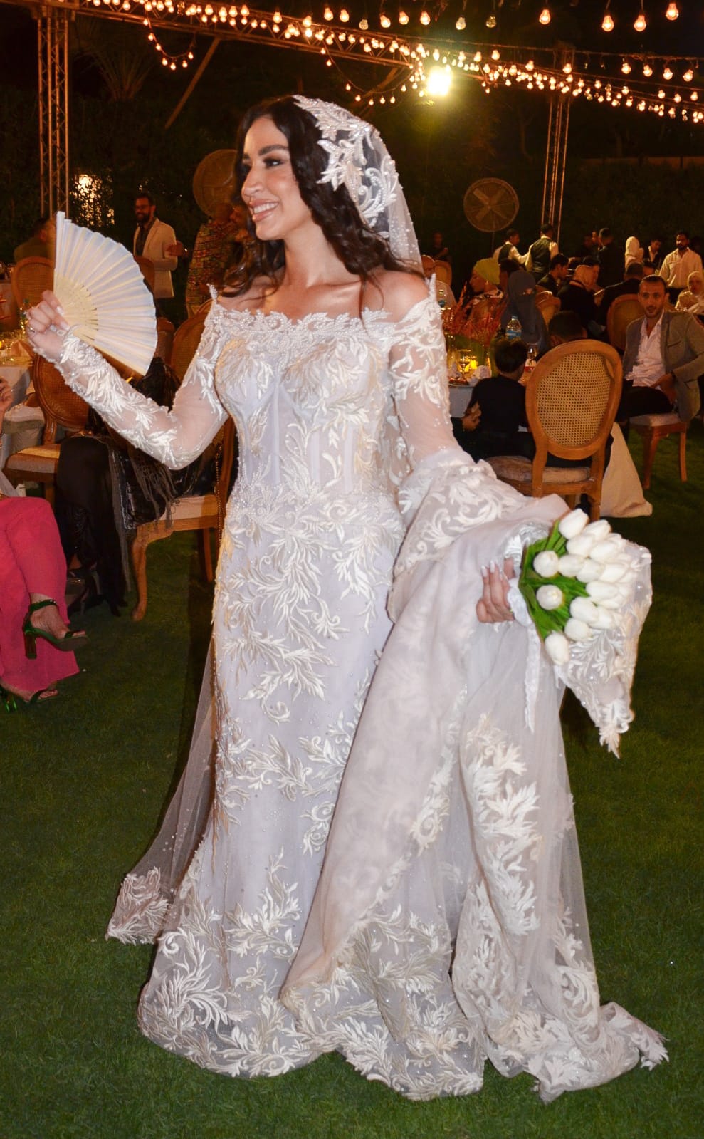 تالقت العروس بإطلالة رقيقة مرتديى فستانا رائعا من تصميم العالمي هاني البحيري خطف أنظار الجميع.