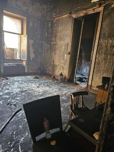 ٢ – طلب بيان رسمي مفصل بكافة الموجودات ومحتويات الحجرات التي امتدت إليها النيران.