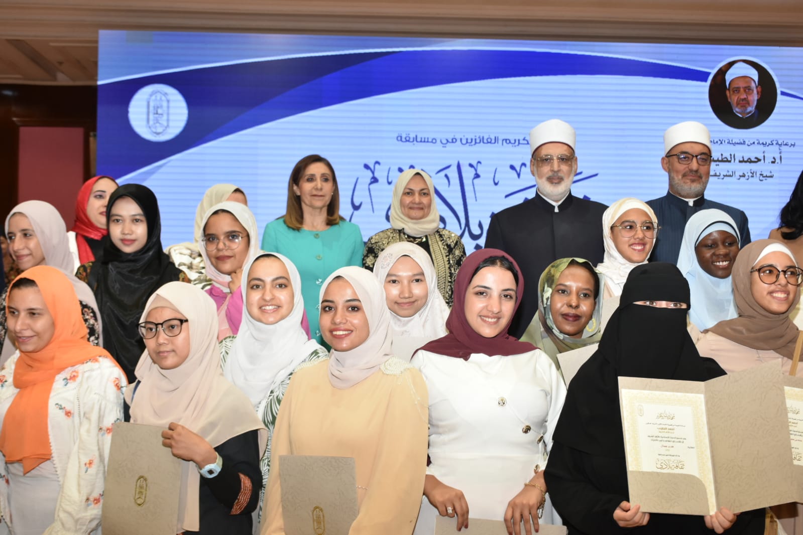 وعقب الكلمات، تم تكريم الفائزين، حيث حصل على المركز الأول: خليل أمين إبراهيم “مصر”- محمد منير الإسلام “بنجلاديش”- أنس عادل “مصر”- عبد القادر سميح “اليمن”- جنة أيمن “مصر”- حنيفة رمضانتي “إندونيسيا”- روان خليل عبد السلام “مصر”- رحمة حكما نافعا من لدنا “إندونيسيا”- محمد أحمد محمد كمال “مصر”- محمد معروف “بنجلاديش”.