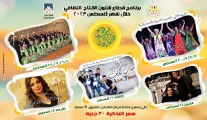 يشار إلى أن قطاع شئون الإنتاج الثقافي، يقدم ذلك البرنامج للعام الثالث على التوالي، بعد ما حققه من نجاح جماهيري خلال فعالياته في عامي 2021 و2022، وسعر التذكرة موحد 30 جنيهًا.