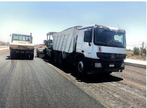 وأوضح المهندس السيد همام، أنه جارٍ حالياً تنفيذ أعمال الطبقة الرابطة ” الأسفلت ” في المسافة من 3500 إلى 4500 بالطريق الرئيسي الجانب الأيسر، حيث يشمل الطريق عدداً من الأعمال الصناعية، مشيراً إلى أنه تم التأكيد على ضرورة الالتزام بالانتهاء من المشروع في المواعيد المحددة والالتزام بكافة معاير الجودة المطلوبة أثناء التنفيذ.