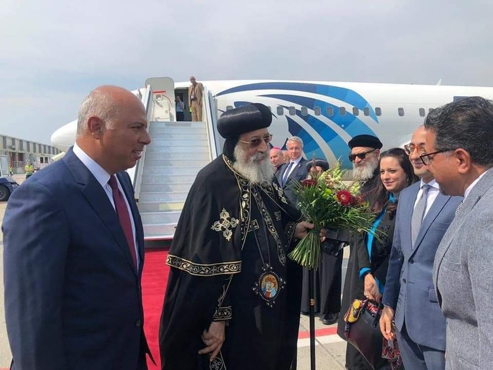 وكان في استقبال قداسة البابا ، شاميين چولت نائب رئيس الوزراء المجري، وأعضاء السفارة المصرية بالمجر، والأنبا چيوڤاني، أسقف وسط أوروبا، والأنبا جابرييل، أسقف النمسا، والقمص يوسف خليل، كاهن الكنيسة القبطية بالمجر.