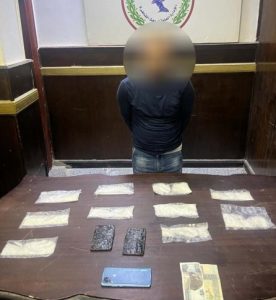 ضبط (أحد الأشخاص – مقيم بدائرة قسم شرطة الشرابية) ، وبحوزته (كمية من مخدر الآيس وزنت كيلو جرام – كمية من مخدر الحشيش – هاتف محمول)