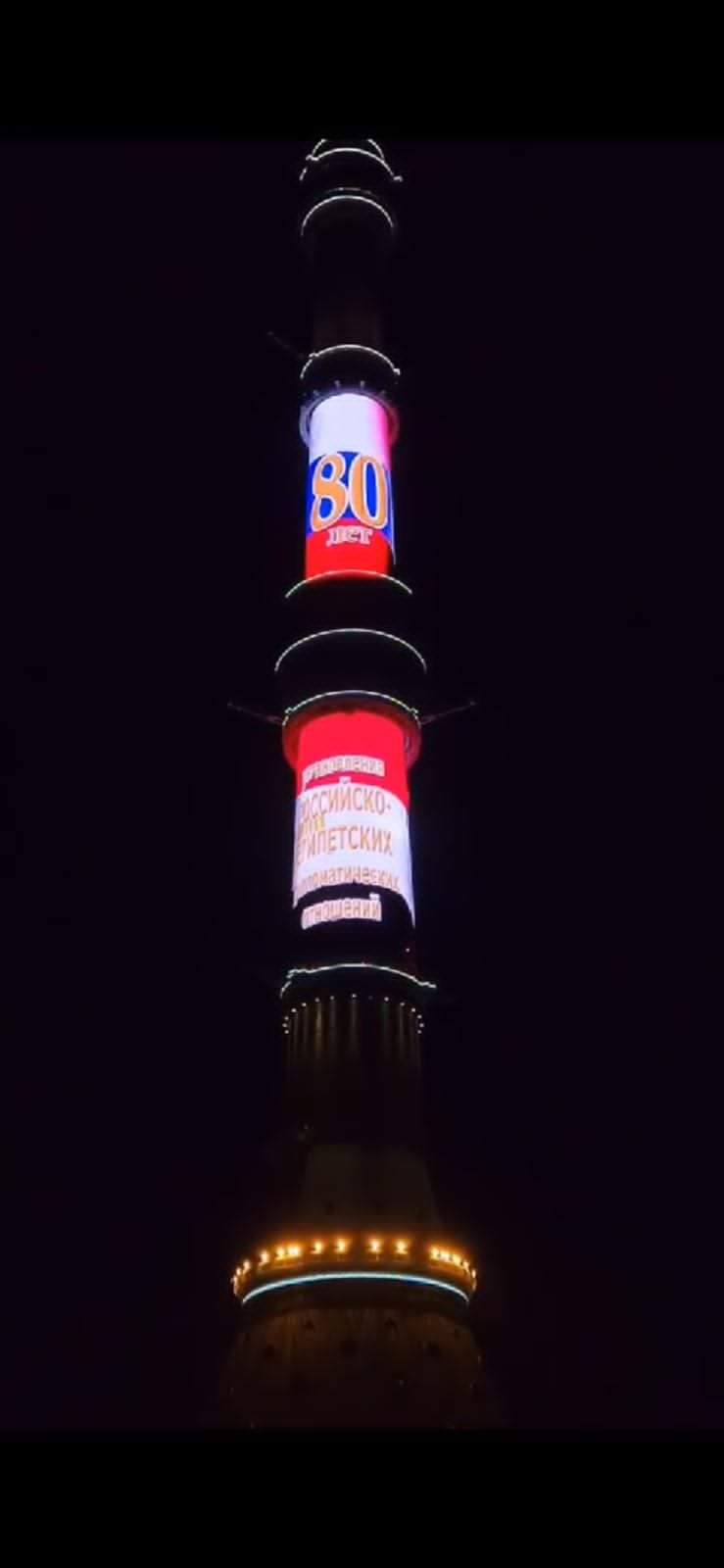 أضاءت وزارة الخارجية مبناها بوسط القاهرة، بعبارة «مصر 80 روسيا» احتفالًا بمرور 80 عامًا على تدشين العلاقات الدبلوماسية بين مصر وروسيا.