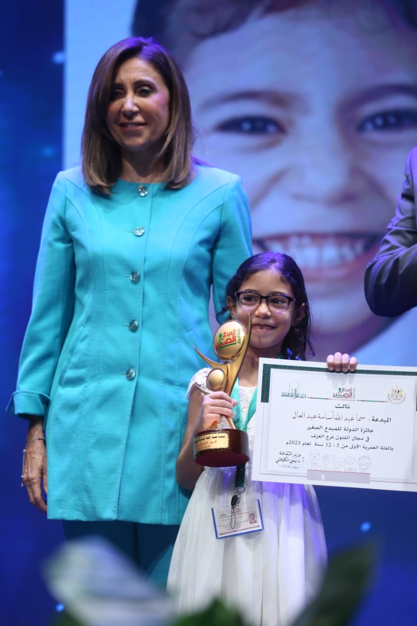ووجهت وزيرة الثقافة الشكر لفخامة الرئيس عبد الفتاح السيسي رئيس الجمهورية، لاهتمامه الكبير بدعم واحتضان مبدعي مصر من الأطفال والنشء، وتخصيص جائزة الدولة للمبدع الصغير، تتويجًا لقيمة هذه المواهب الإبداعية بمجالات الثقافة والفنون والابتكارات المتعددة، كما ثمنت رعاية السيدة انتصار السيسي، للجائزة حرصا منها على دعم وصقل قدرات أبنائنا بالمجالات المتنوعة.