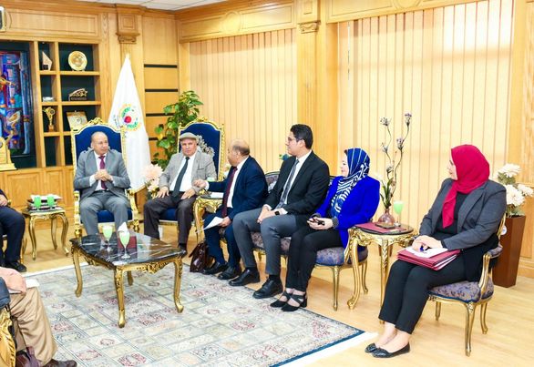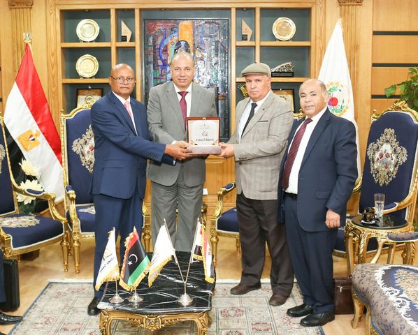 بحث سبل التعاون بين جامعات المنصورة والجفرة وأفريقيا ووفد الملحقية الثقافية الليبية