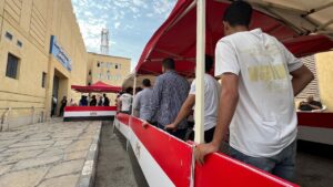 توافد المواطنين على مكاتب توثيق الشهر العقارى بمنطقة مدينتي لعمل توكيلات تأييد للرئيس