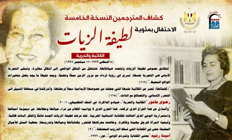 يعلن المركز القومي للترجمة برئاسة الدكتورة كرمة سامي عن أسماء الفائزين في الدورة الخامسة من كشاف المترجمين والتي خُصِصت للاحتفال بمئوية الأديبة والكاتبة الكبيرة الدكتورة لطيفة الزيات