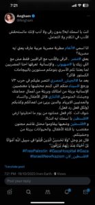 وهو ما جعله يرد ب “تدوينة” يهاجمها فيها قائلا : “حضرة الفنانة أنغام والتي من المفترض أن تكون على قدر من الرقي في مناشيرها، إن الله سيفتكر عباده جميعًا وليس هناك من معمّر على هذه الأرض لكن الفرق أن هناك من سيلقى في الآخرة العذاب الأليم وهناك من سيفتقده، عز وجل، برحمته على أفعاله الإنسانية. أرجو أن لا تكوني من مصير الفئة الأولى…. “.