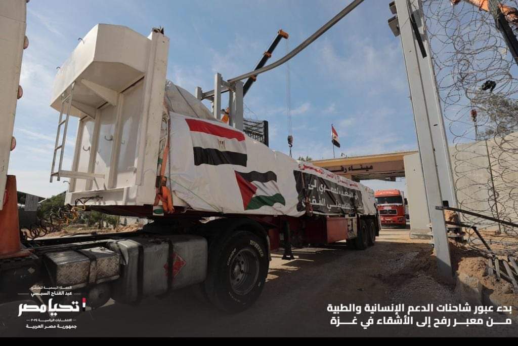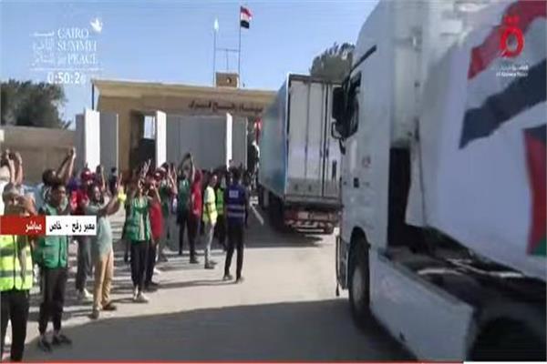 بالتزامن مع مؤتمر القاهرة للسلام، دخول شاحنات الدعم الإنسانية والطبية إلى قطاع غزة عبر معبر رفح المصري.