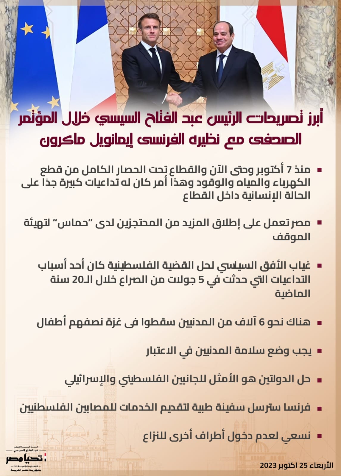 الحملة الرسمية للسيسي تستعرض أبرز رسائله خلال المؤتمر الصحفى مع ماكرون