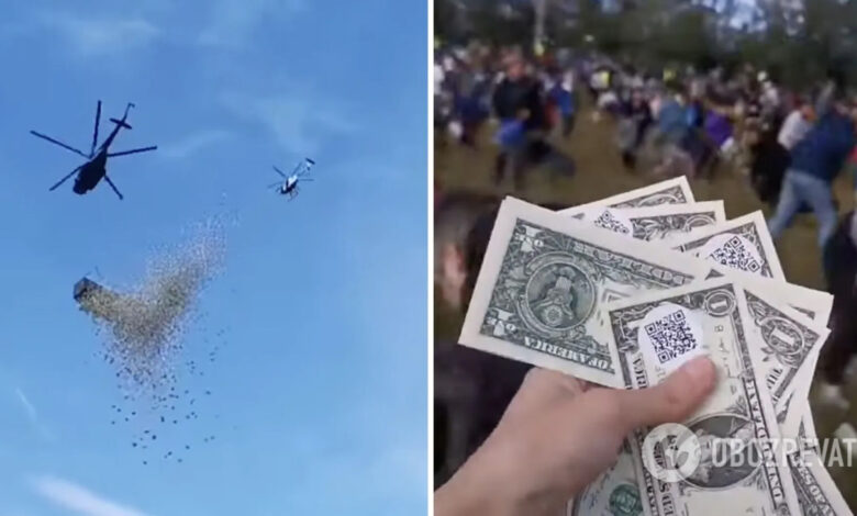 ألقى نجم تلفزيوني، نحو مليون دولار من طائرة هليكوبتر على حشد كبير من متابعيه في وسائل التواصل الاجتماعي، بعد أن تعهد بأنه سيقدم لهم هدية لا تنسى.