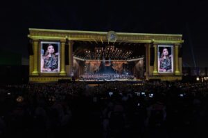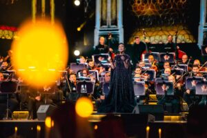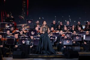 وحصدت أنغام وصلات التصفيق الحار وصيحات إعجاب الالاف من جمهور الحفل من مختلف الجنسيات العربية حيث خطفت قلوبهم بصوتها واحساسها القوى ل ثلاث أغنيات للموسيقار الراحل هي “الحب اللي كان” لميادة الحناوى، “آه لو قابلتك من زمان” لوردة و “أنساك” لكوكب الشرق ام كلثوم.