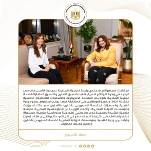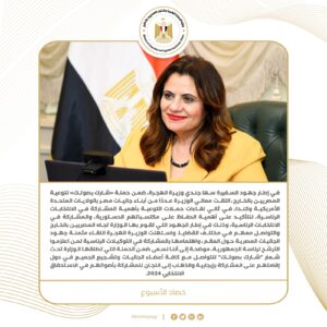 اصدر المركز الإعلامى لوزارة الهجرة تقرير عن نشاط الوزيرة سها جندى على مدار اسبوع