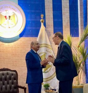 وقد صاحبه خلال الزيارة، وفداً رفيع المستوى ضم كلاً من: المستشار عبد الناصر خطاب، والمستشار عبد الحليم محمود، عضوي المجلس الأعلى للنيابة الإدارية، والمستشار الدكتور محمد أبو ضيف الأمين العام للمجلس الأعلى للنيابة الإدارية، والمستشار منتصر عبد العال – مدير إدارة النيابات، والمستشار محمد سمير – مدير مركز الإعلام والرصد، والمستشار أحمد عبد البديع – مدير مكتب رئيس الهيئة، والمستشار محمد صلاح – مدير وحدة العلاقات العامة والمراسم.