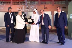 والقى الأستاذ الدكتور رامي إسكندر مدير إدارة التربية ، القائم بأعمال مدير إدارة الثقافة بالألكسو كلمة نيابة عن الأستاذ الدكتور محمد ولد أعمر، المدير العام للمنظمة العربية للتربية والثقافة والعلوم قال فيها: منذ عامين تم تشريف دولة الإمارات العربية المتحدة بحمل اللقب الأول لـ سفيرة الثقافة العربية، وقد كانت فرحتنا غامرة باختيار شخصية رفيعة المستوى “الشيخة اليازية بنت نهيان آل نهيان“، لحمل هذا اللقب لأول مرة بالصفة الرسمية “سفيرة فوق العادة للثقافة العربية“، وهو تشريف والتزام يؤكد الدور الريادي لدولة الإمارات العربية المتحدة، ويبرز مكانتها وإشعاعها، وجهود قياداتها الرشيدة في تعزيز العمل الثقافي العربي المشترك وخدمة قضايا السلم والتنمية المستدامة وطنيا، وعربيا، ودوليا. وقد كانت السفيرة على قدر الأمانة، وأوفت بالتزاماتها تجاه المنظمة وشركائها، وقادت بحكمة أنشطة المشروع على مختلف مستوياته الوطنية، والإقليمية والدولية. وتركت الذكر الحسن والنتائج الملموسة، على امتداد خارطة الوطن العربي. فلها منا كامل العرفان، والامتنان وفريقها المحترم كل التحية والتقدير.