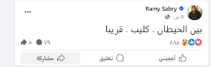 وكتب رامي صبري عبر حسابه الرسمي بموقع التواصل الإجتماعى “فيس بوك”: “بين الحيطان . كليب قريبا”.