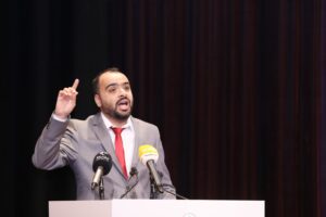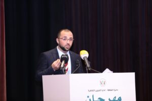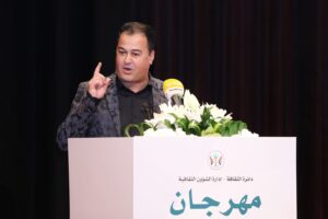 الشاعر عمر الأزمي من المغرب ثالث شعراء الأمسية، حلق بالحضور في مناخات أخيلته وصوره الشعرية وموشحاته الحزينة، واستطاع بحضوره على المنصة أن يلامس شغاف القلوب، وقرأ “فصل ختامي لموشح حزين” قائلا: