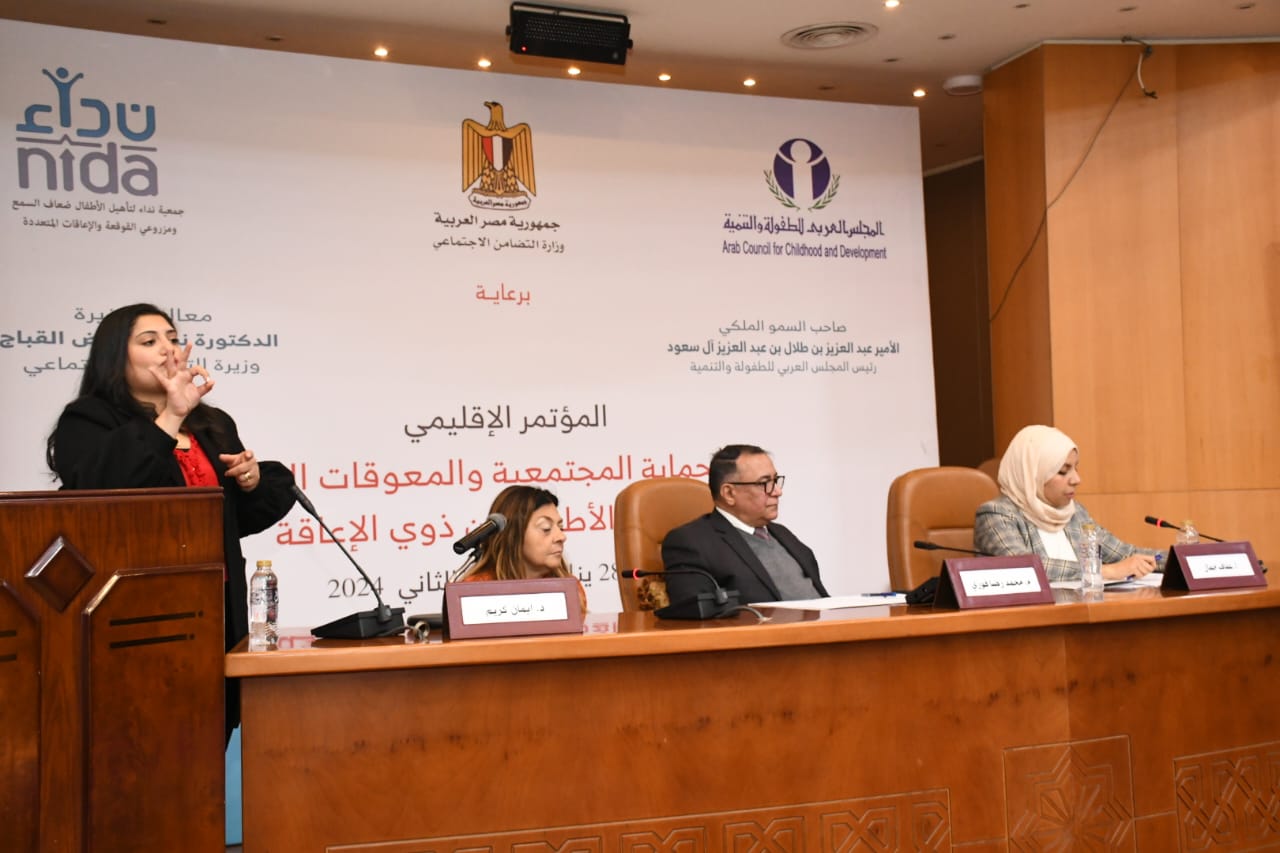 تحت رعاية صاحب السمو الملكي الأمير عبد العزيز بن طلال بن عبد العزيز آل سعود رئيس المجلس العربي للطفولة والتنمية ومعالي الدكتورة نيفين القباج وزيرة التضامن الاجتماعي بجمهورية مصر العربية، عقد يوم الأحد 28 يناير 2024 أعمال المؤتمر الإقليمي “الحماية المجتمعية والمعوقات التي يواجهها الأطفال من ذوي الإعاقة”، بتنظيم من المجلس العربي للطفولة والتنمية وجمعية نداء لتأهيل الأطفال ضعاف السمع وذوي الإعاقات المتعددة.