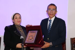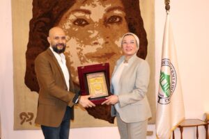 خالد الطوخى رئيس مجلس الأمناء يكرم الوزيرة ياسمين فؤاد ويمنحها درع الجامعة