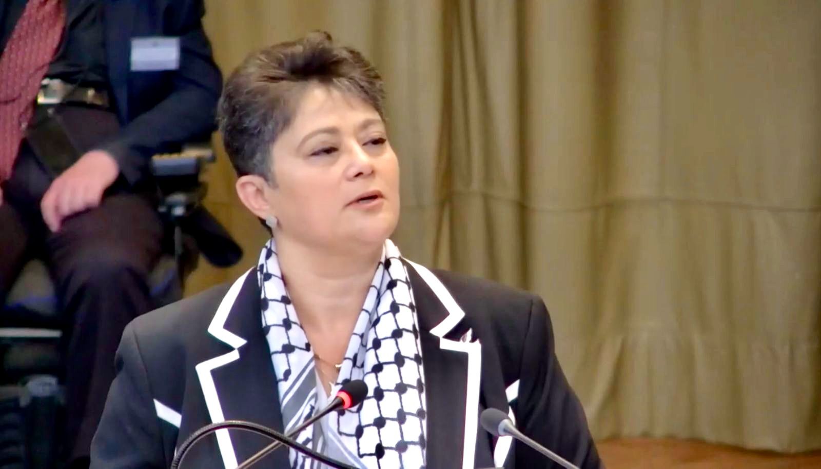 وقالت أنها تتشرف للمثول نيابة عن دولة فلسطين للتصدي للتمييز العنصري والاضطهاد والفصل العنصري الذي تمارسه إسرائيل ضد كافة أبناء الشعب الفلسطيني.