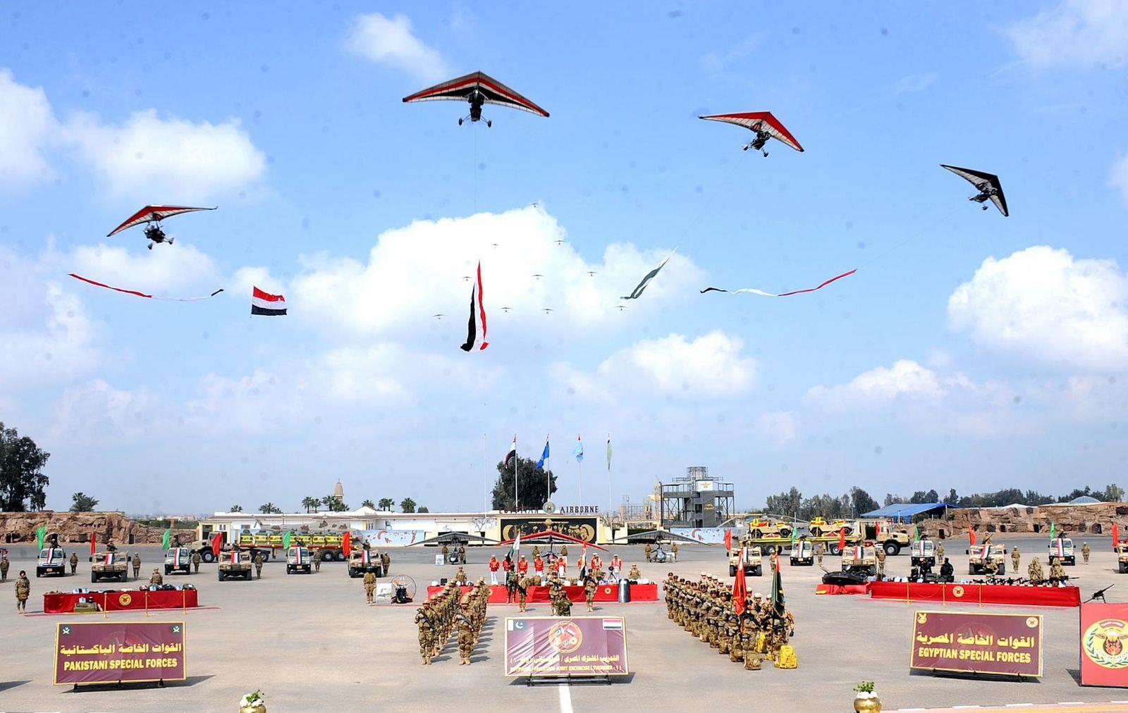 انطلقت فعاليات التدريب المشترك المصرى الباكستانى (رعد – 1) بمشاركة عناصر من قوات المظلات والصاعقة المصرية والقوات الخاصة الباكستانية والذى تستمر فعالياته لعدة أيام بميادين التدريب القتالى بقيادة قوات المظلات بجمهورية مصر العربية .