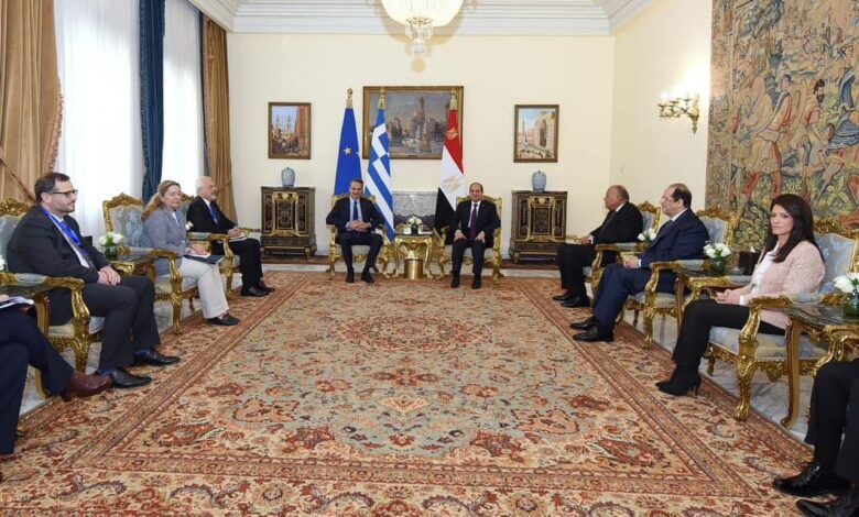 أكدا ضرورة التوصل لوقف فوري لإطلاق النار بغزة.. الرئيس السيسي يستقبل رئيس وزراء اليونان