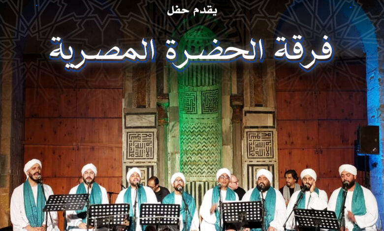 يستقبل مركز الابداع الفني بقبة الغوري في التاسعة مساء الخميس الموافق ١١ رمضان ١٤٤٥ حفل جديد لفرقة (الحضرة المصرية)، وذلك ضمن فعاليات البرنامج الرمضاني الذي يقدمه قطاع صندوق التنمية الثقافية برئاسة الدكتور وليد قانوش، وتحت رعاية وزيرة الثقافة نيفين الكيلاني و تقدم الفرقة العديد من القصائد الجديدة على الذكر الجهري بأسماء الله الحسنى.