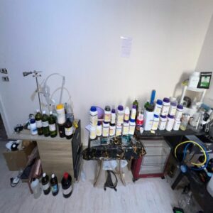عقب تقنين الإجراءات تم إستهداف الشقتين المشار إليهما وأمكن ضبط المتهمين وعثر على معملين كيميائيين يحويان (كمية من أدوات ومواد وخامات التصنيع المتنوعة – بعض العقاقير الطبية – 5 كيلو جرام من مخدر الآيس الـمُصنع “يتم إعدادها وتجهيزها لترويجها للبيع”).. وبمواجهتهما أقرا بنشاطهما الإجرامى.