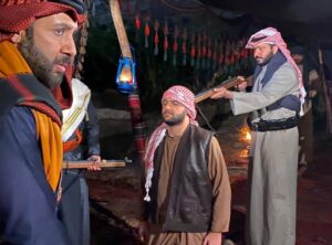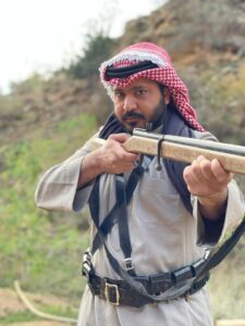 وأوضح الفنان السعودي ان العمل تم تصويره في الاردن بسد الملك طلال في مدينة جرش مع المنتج عصام حجاوي ، وان ترشيح الفنان د. هاني ناظر سفير الفن السعودي هو سبب في مشاركتي بهذا المسلسل ذا الطابع البدوي ، حيث كان اسمي في المسلسل (مسعود) ولكن تم تغييره الى (ابو الفشك) اي ابو الرصاص وذلك بعد حدوث موقف طريف وهو اني اشتريت بعض الرصاص المزيف لوضعه على الحزام المجند الذي ارتديه. فقام المنتج بمعاتبتي للتدخل في موضوع الاكسسوار وقام بتغيير اسمي لابو الفشك ، وكانت شخصيتي تجسّد الرجل الأمين لشيخ القبيلة والذي يؤتمن على المال والنسوان ويكون خير عون للقبيلة ، وان فترة تصوير المسلسل استغرقت ثلاثة أشهر .